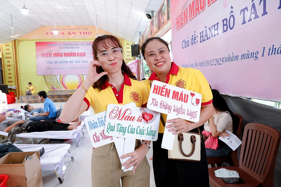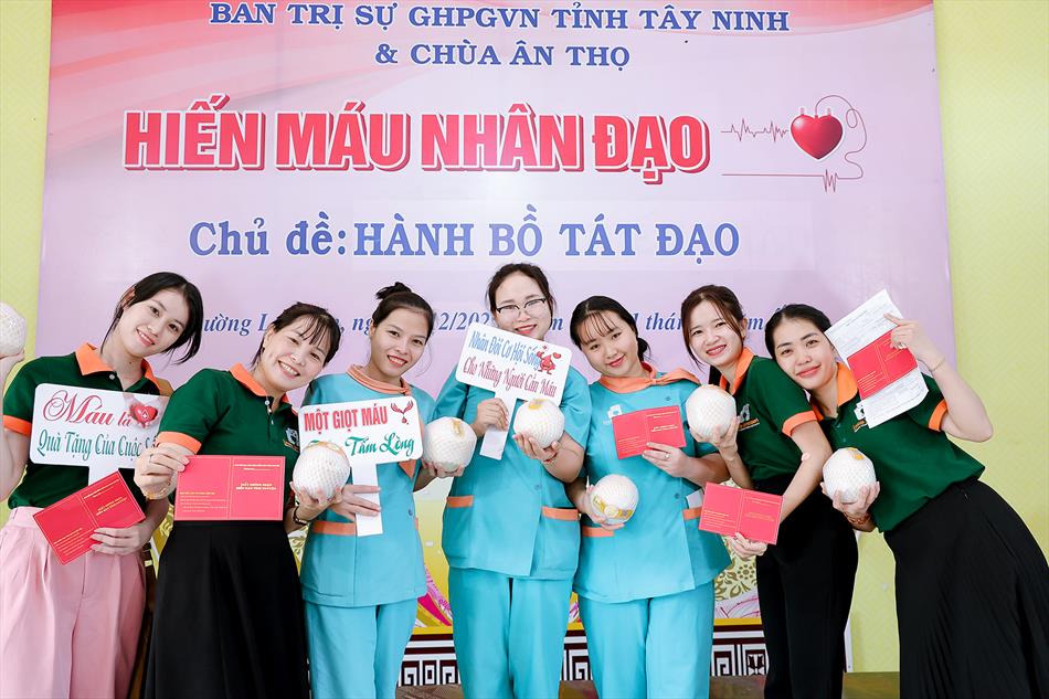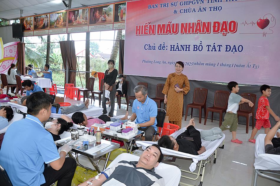 Chương trình được tổ chức chu đáo, đúng quy trình y tế, bảo đảm an toàn cho người hiến máu. Không khí buổi hiến máu diễn ra ấm áp nghĩa tình, lan tỏa thông điệp lấy máu của mình để bổ sung sức khoẻ cho người khác, đây là thực hành hạnh nguyện của Bồ tát giúp đời.