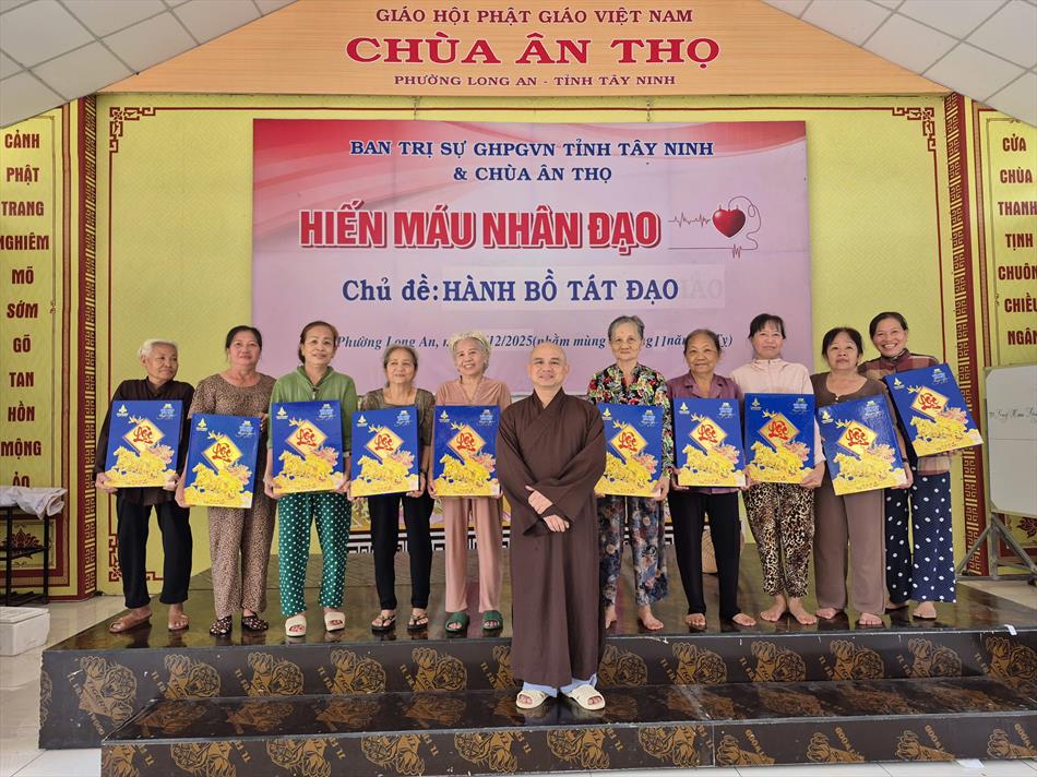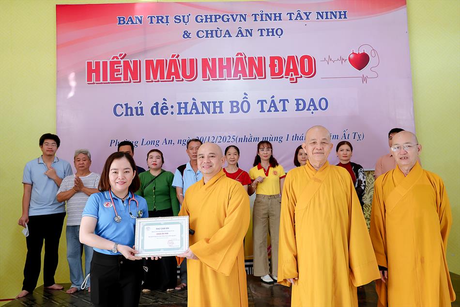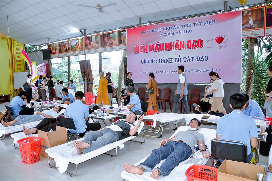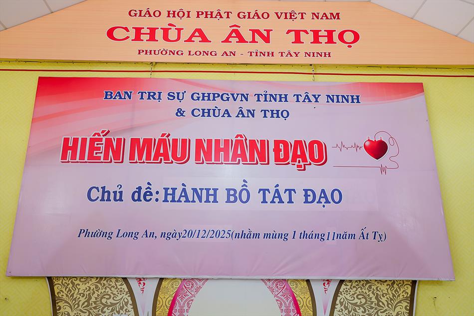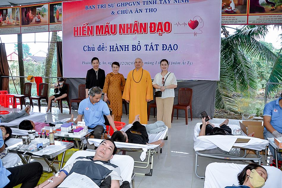 Hiến máu nhân đạo là 1 hoạt động xã hội đặc trưng của Phật giáo tỉnh nhà, được thực hiện tại chùa Ân Thọ. Đây là lần hiến máu cuối trong năm 2025, kế hoạch trong năm 2026 chùa sẽ tổ chức 3 lần hiến máu, 3 lần khám mắt miễn phí để phục vụ bà con Phật tử và nhân dân trong vùng.