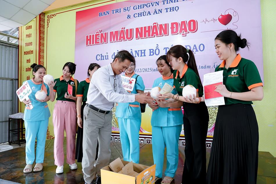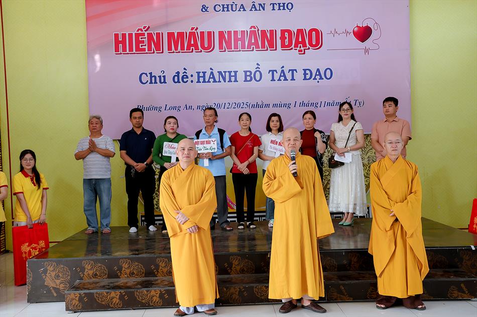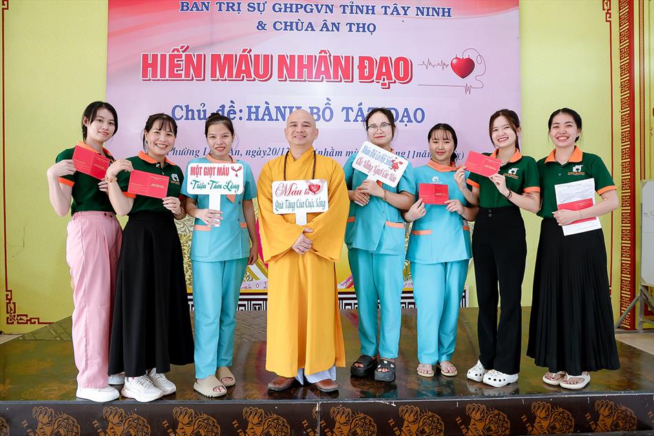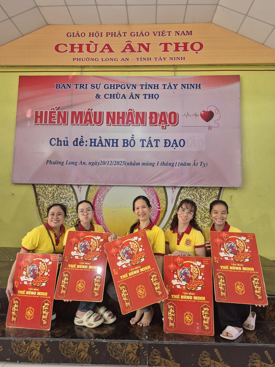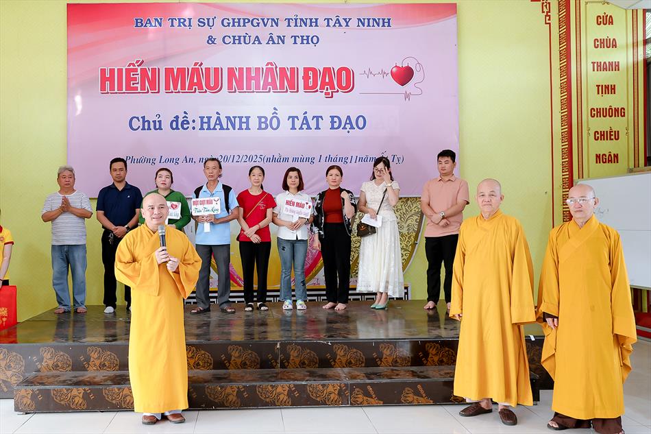 Hiến máu nhân đạo là 1 hoạt động xã hội đặc trưng của Phật giáo tỉnh nhà, được thực hiện tại chùa Ân Thọ. Đây là lần hiến máu cuối trong năm 2025, kế hoạch trong năm 2026 chùa sẽ tổ chức 3 lần hiến máu, 3 lần khám mắt miễn phí để phục vụ bà con Phật tử và nhân dân trong vùng.