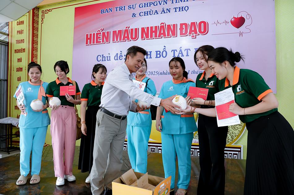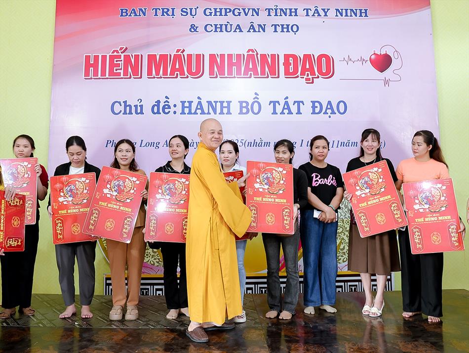 Dịp này, chùa Ân Thọ đã trao tặng những phần quà tri ân đến các tình nguyện viên có từ 10 lần hiến máu trở lên, như một lời cảm ơn và sự ghi nhận đối với những tấm lòng bền bỉ, âm thầm cống hiến vì sức khỏe cộng đồng; đồng thời khích lệ phong trào hiến máu càng lan tỏ.