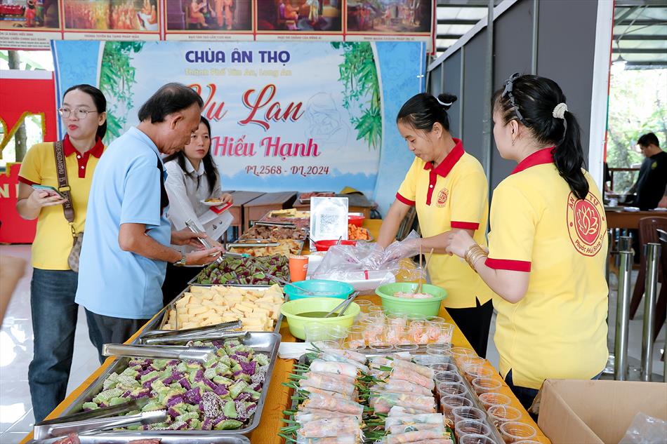 Quan tâm đến chăm sóc sức khóe dinh dưỡng cho các tình nguyện tham gia hiến máu Chùa tổ chức quầy ẩm thực với nhiều món ăn như bánh canh, bánh ướt, bánh mì các lọai bánh dân gian.. Chùa Ân Thọ trân trọng ghi nhận sự tham gia hiến máu của các tình nguyện viên, các phụng sự viên và các mạnh thường quân đồng hành Thanh Tattoo Long An, Kim Xoa Bakery, Thế Hùng Minh Jewelry, Nhóm thiện nguyện Hoa Sen, MPT SAFARI Company…