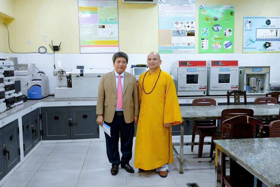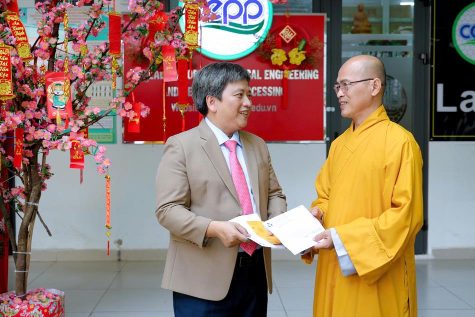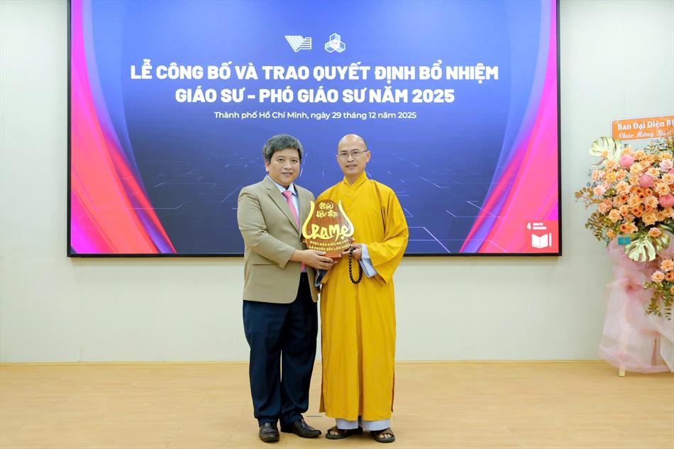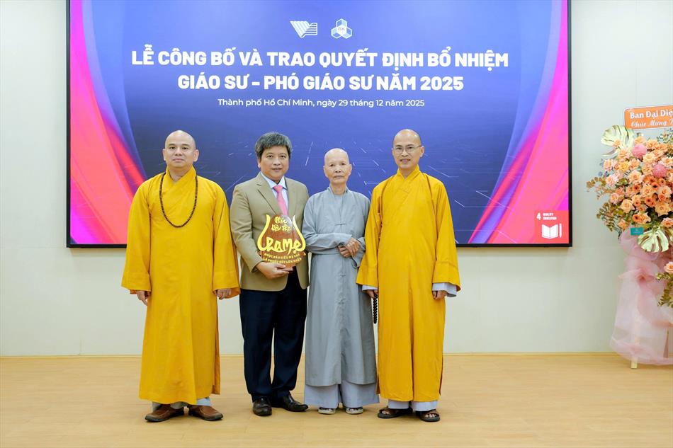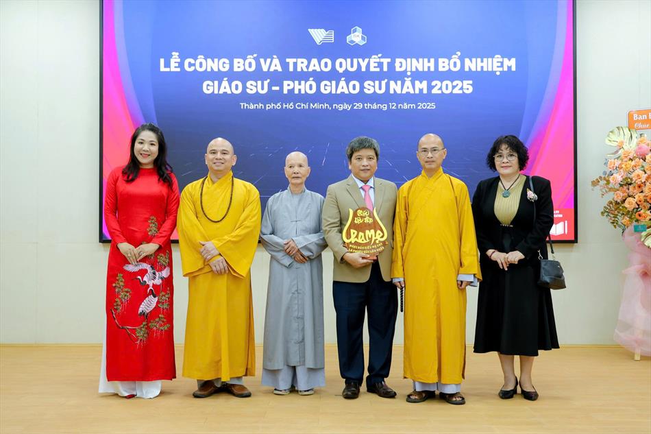 Trong niềm hoan hỷ, hai thầy đã trao tặng những phần quà chúc mừng đầy ý nghĩa: tác phẩm thư pháp khắc gỗ thủ công do Thượng tọa Thích Lệ Trí thực hiện và khánh vàng bốn chữ “Đức Học Quang Diệu” do Đại đức Thích Lệ Ngôn kính tặng. Đáng quý hơn, trong các sự kiện trọng đại của Nguyễn Hữu Hiếu như lễ thành hôn, lễ bổ nhiệm Phó Giáo sư và nay là Giáo sư, hai thầy đều hiện diện, thể hiện sự quan tâm bền bỉ và nghĩa tình sâu đậm. Nguyễn Hữu Hiếu luôn trân trọng và ghi nhớ ân tình ấy như một nguồn động viên lớn trên hành trình học thuật và cuộc sống. Còn có sự hiện diện của gia đình và thân hữu trong ngày trọng đại này.