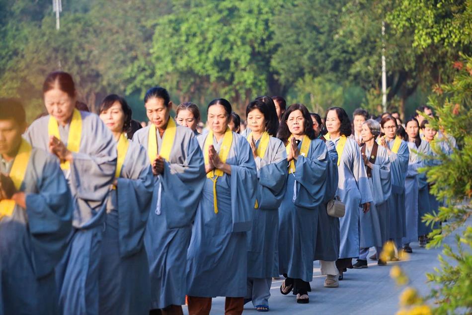 Đức Pháp chủ cũng nhắc nhở đại chúng: “Được sinh ra làm thân người ở cõi Ta-bà này là một túc duyên. Được biết đến Phật pháp là một thù thắng duyên. Được tu tập để trưởng thành trong Phật pháp, trong sự trợ duyên của thiện hữu tri thức lại càng quý báu, để chúng ta không thấy đơn độc trong con đường tu tập. Đó là những điều mà mỗi người học Phật đều phải hết sức trân quý để lấy đó làm tư lương cho mình trên con đường hướng tới giác ngộ của bản thân.”.
