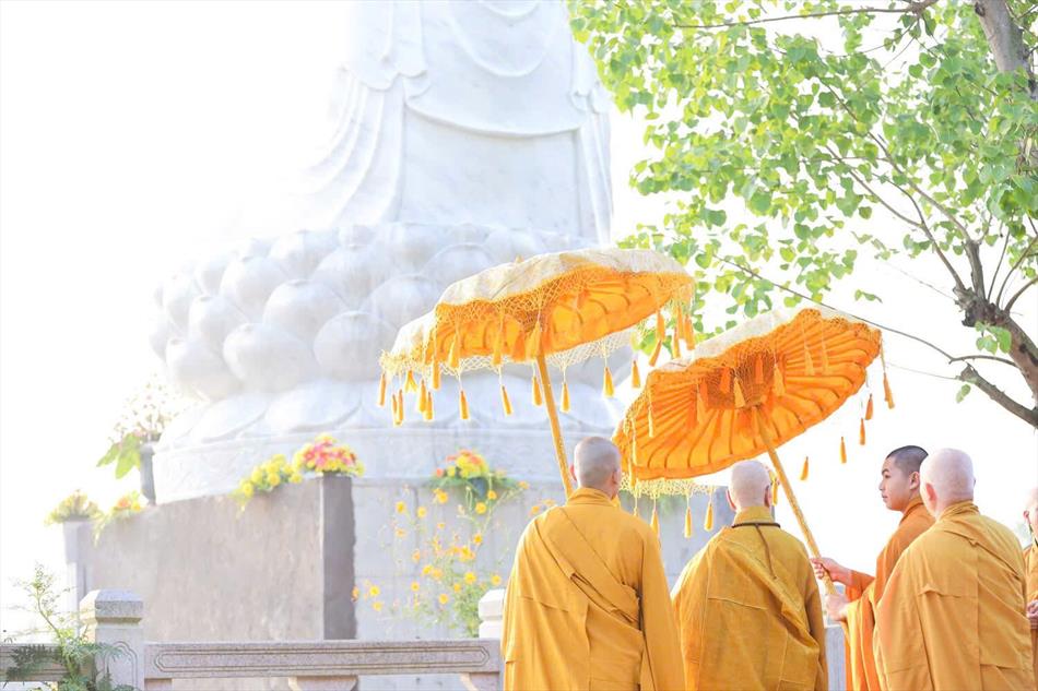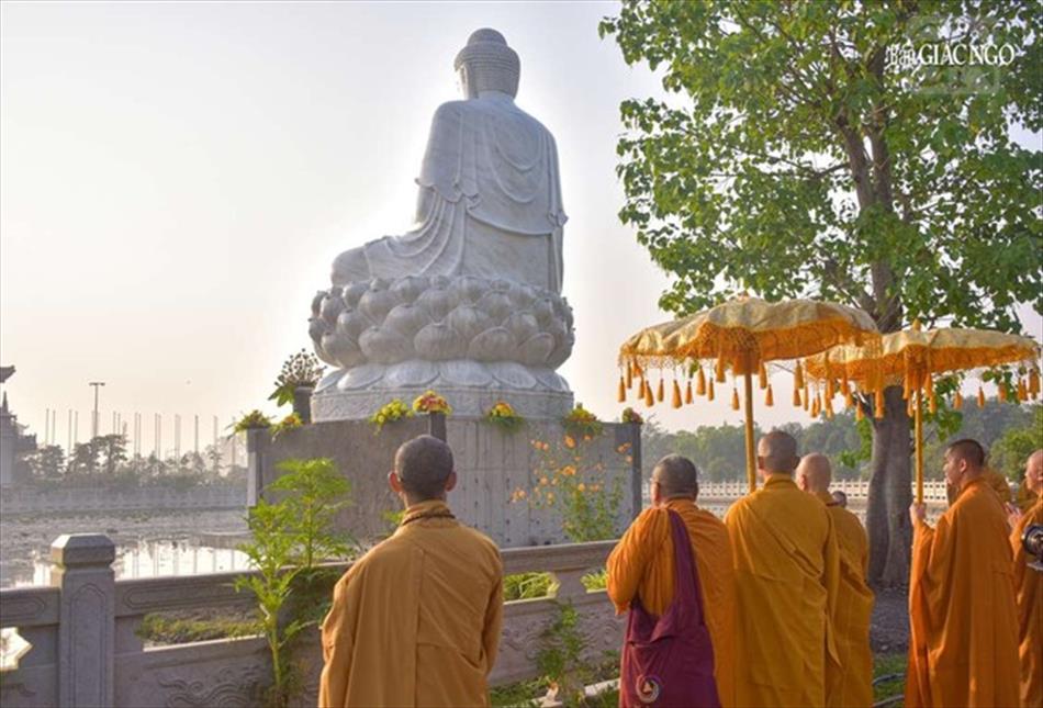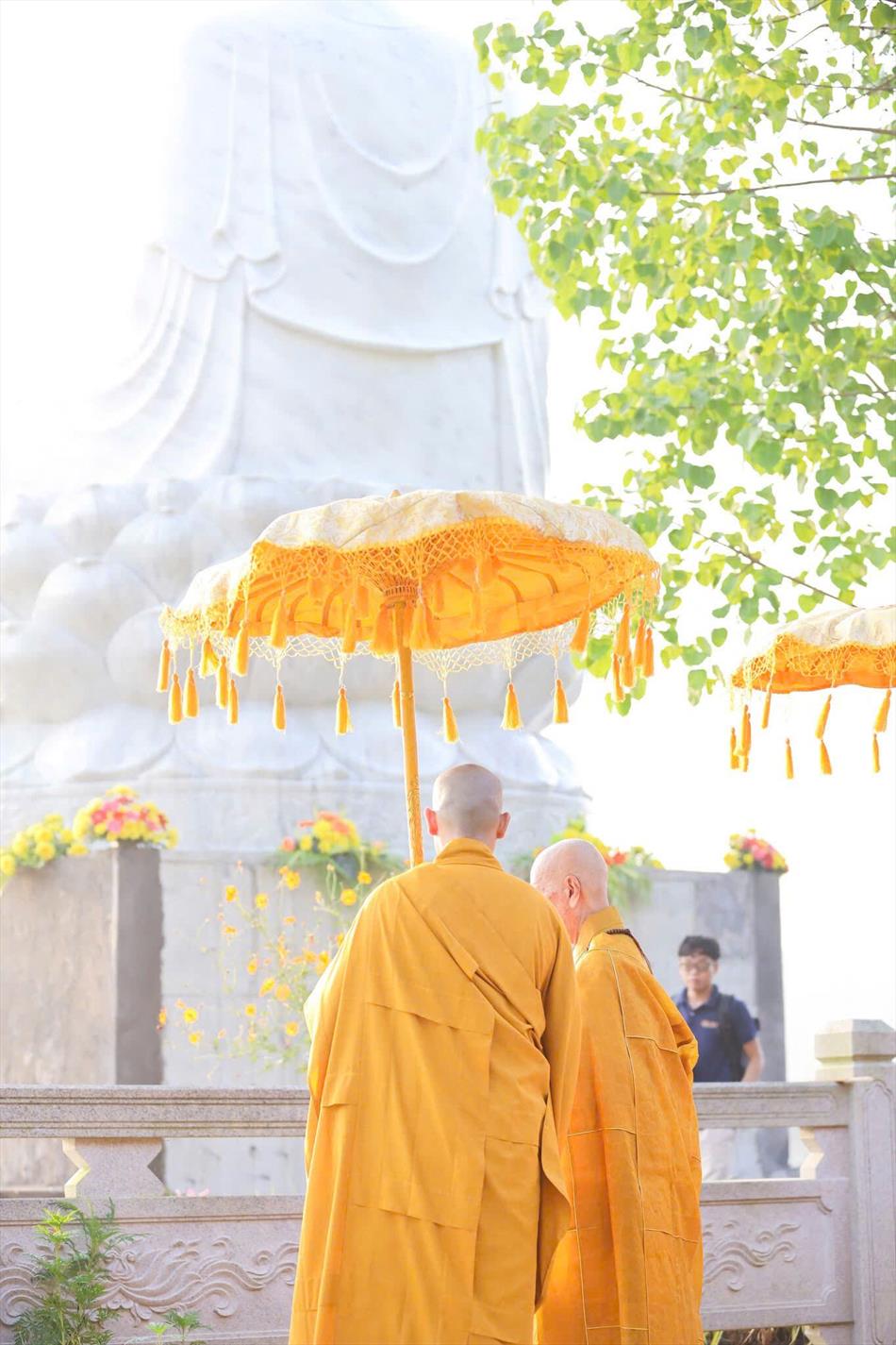 Kết thúc buổi lễ, Đại lão Hòa thượng Pháp chủ và chư tôn đức hiện diện tham dự, cùng Tăng Ni sinh viên đã hữu nhiễu tôn tượng Đức Phật Thích Ca trong khuôn viên Học viện.