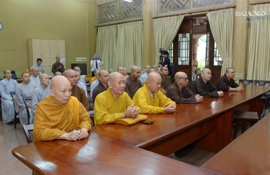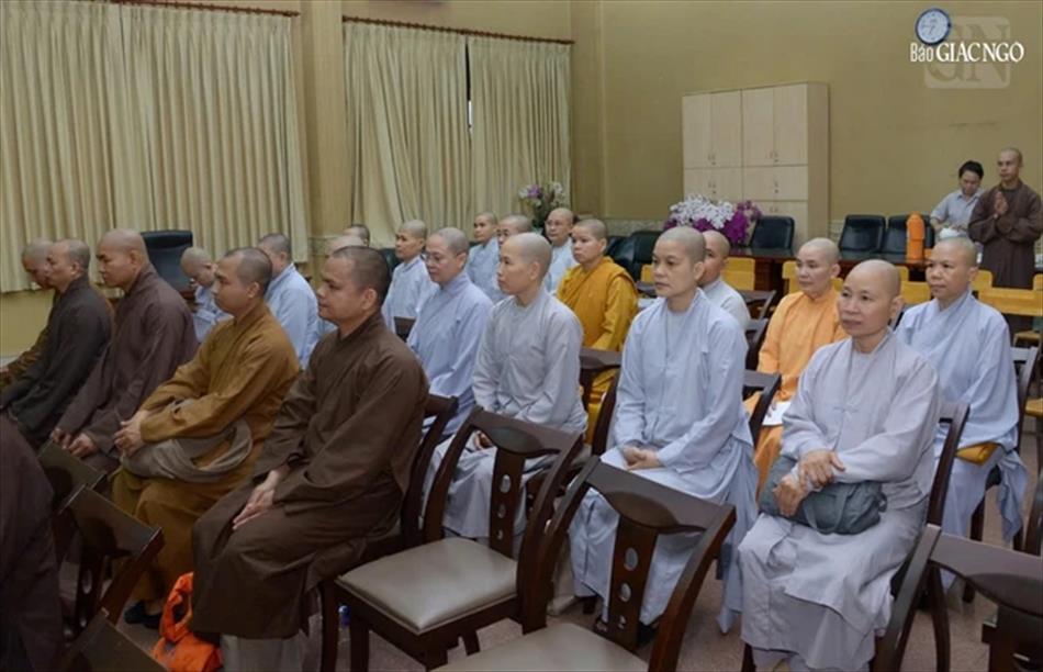 Phiên họp có sự tham dự của chư tôn đức Phó Viện trưởng, Trưởng khoa; các giảng viên đang giảng dạy, các phòng chuyên môn, văn phòng Học viện.