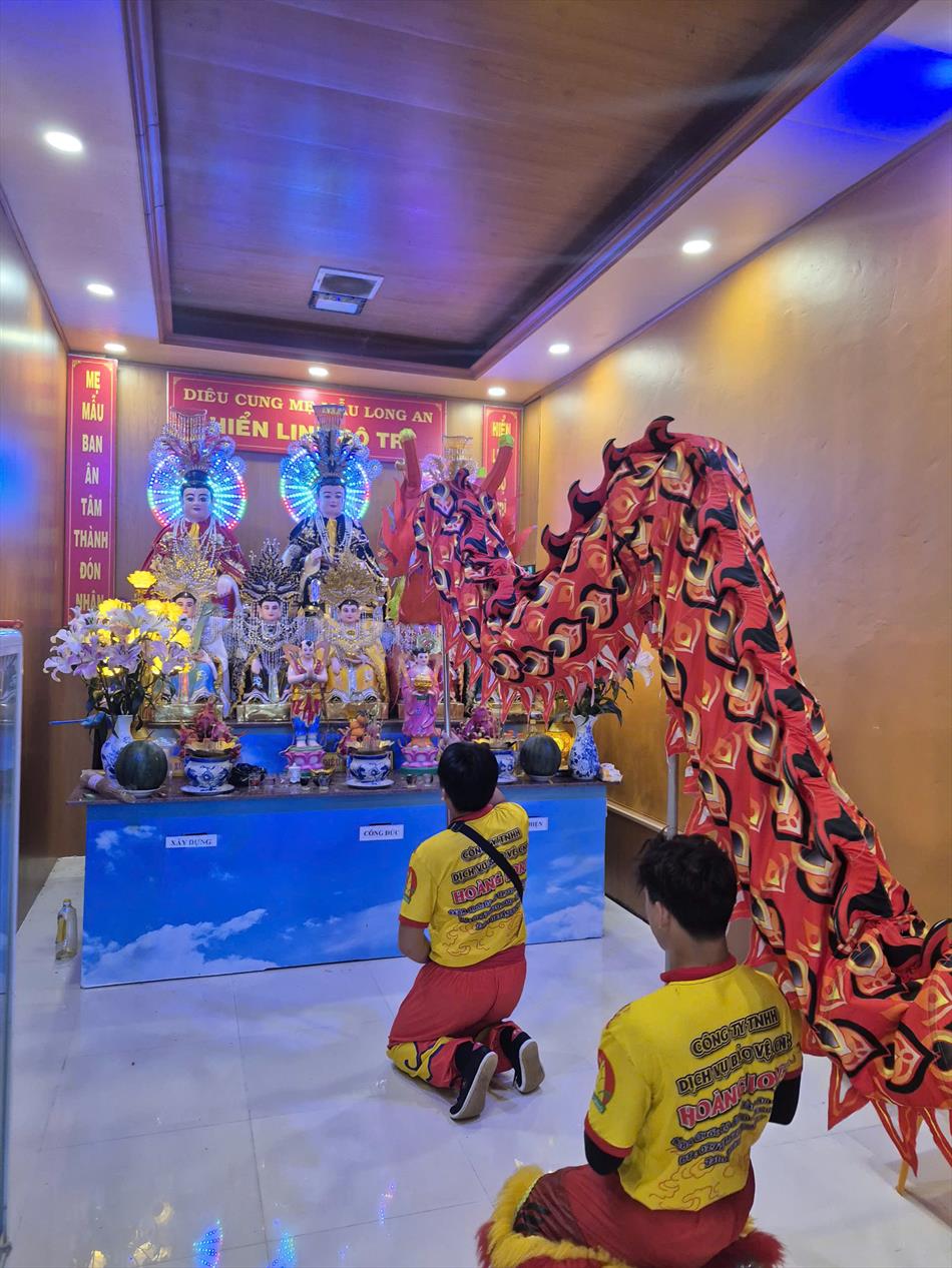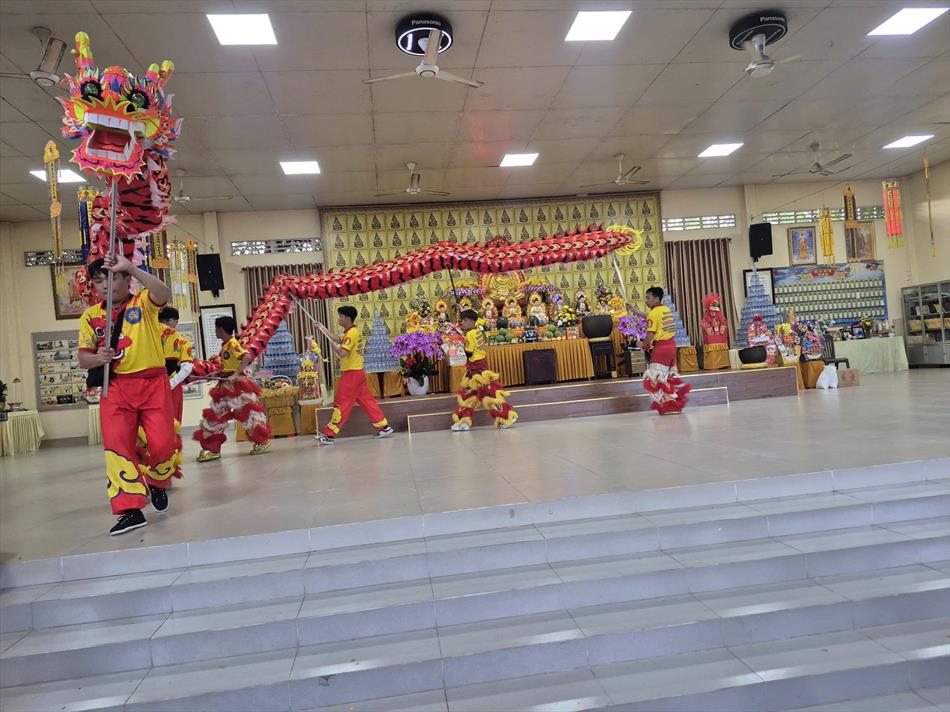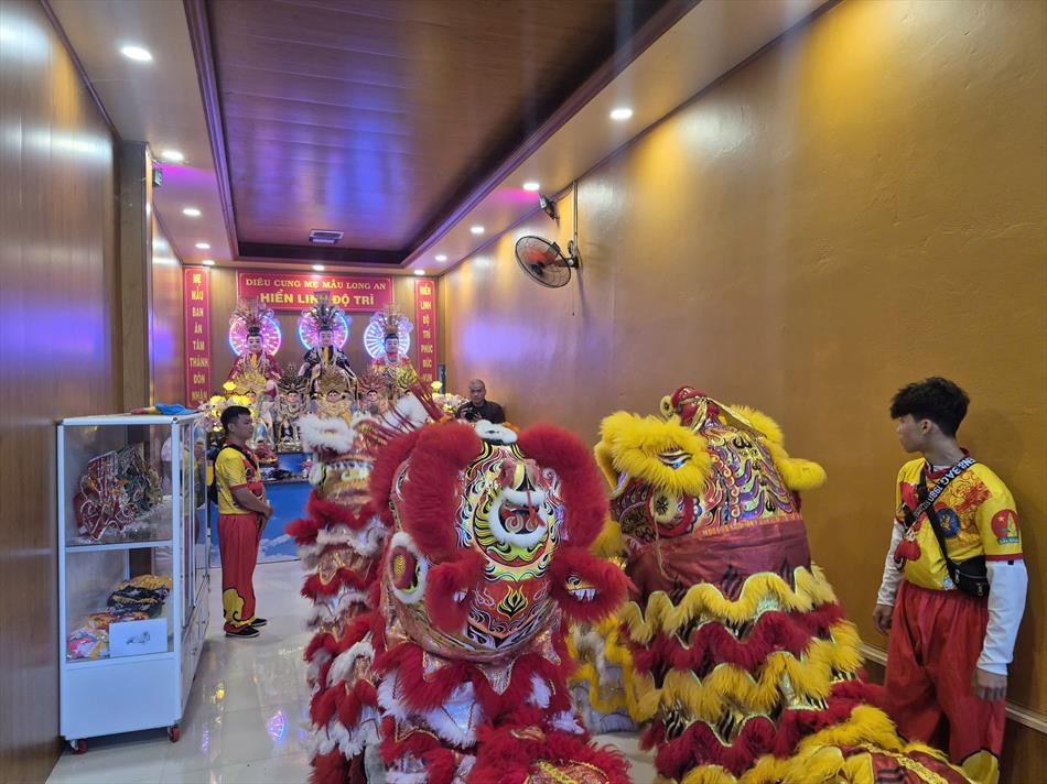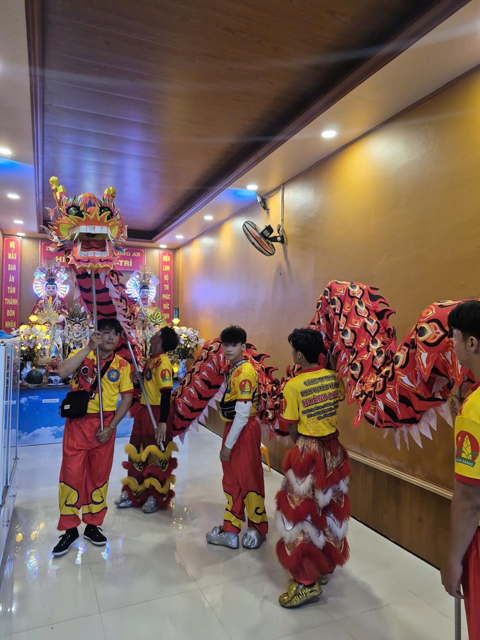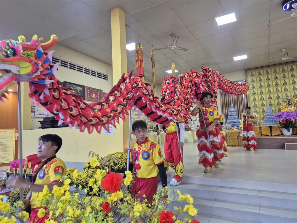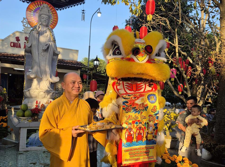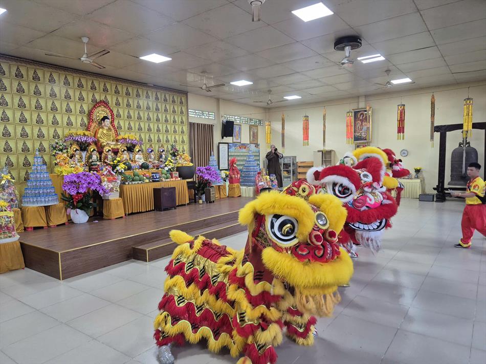 Vào buổi chiều, mùng 4 Tết, chùa Ân Thọ hân hoan đón đoàn lân sư rồng Nhà Văn Hoá Thiếu Nhi Long An đến biểu diễn cúng Tam Bảo, cúng Bà và chúc mừng năm mới.