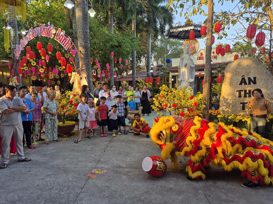 Đông đảo bà con Phật tử và người dân địa phương đã đến thưởng thức, chiêm bái và chung vui trong những ngày đầu năm mới, cùng cầu chúc một năm an lành, cát tường và thịnh vượng.