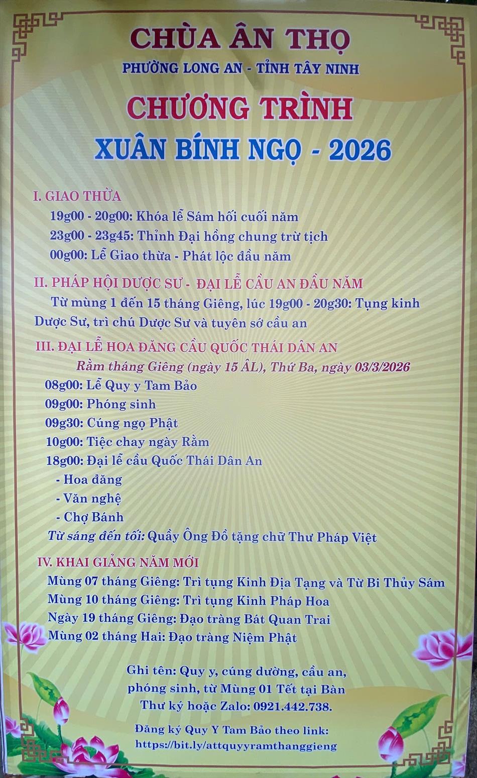 Trong suốt thời gian diễn ra Đại lễ cầu an đầu năm, từ mùng 1 đến 15 tháng Giêng, chùa Ân Thọ luôn đón tiếp đông đảo thiện tín thập phương đến lễ Phật, thỉnh đèn cầu an và tham dự thời kinh tụng vào lúc 19g00 hằng đêm, tạo nên không khí tu học trang nghiêm và ấm áp nghĩa tình đầu xuân.