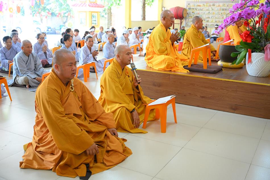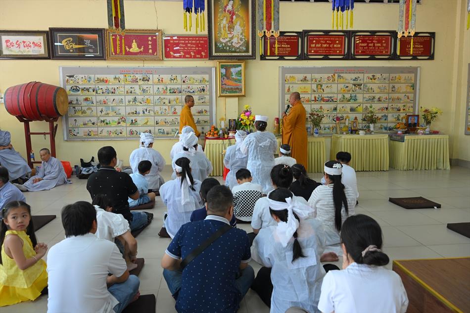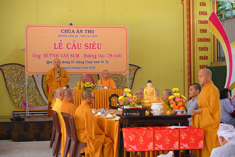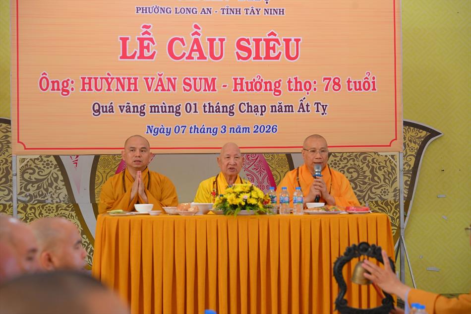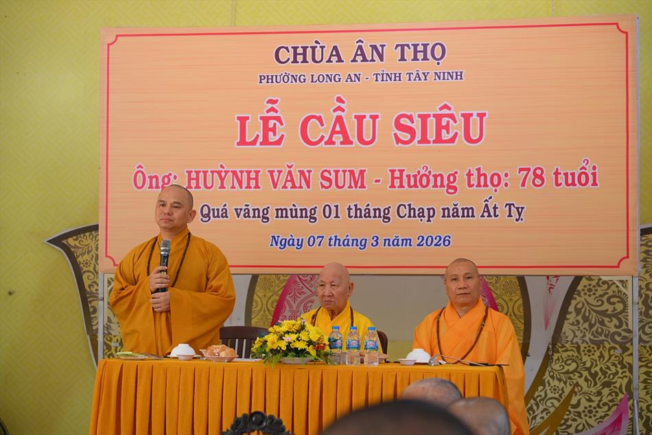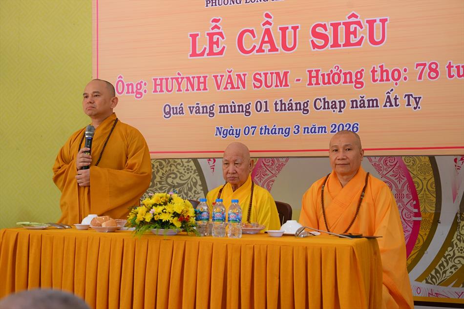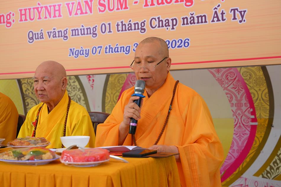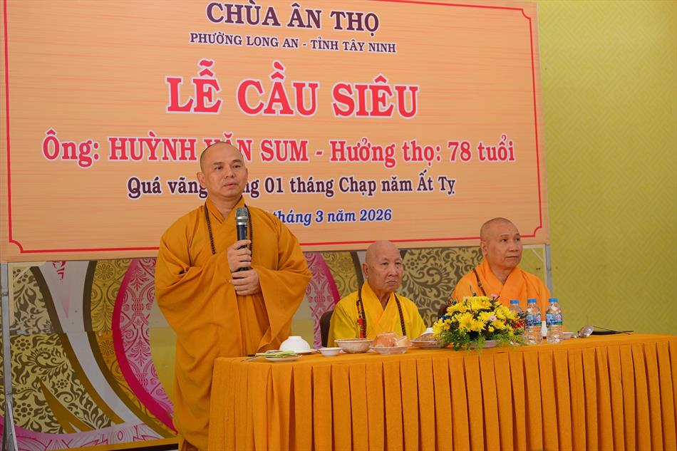 Tại buổi lễ, sau lời tác bạch của đại diện gia đình trai chủ, Thượng tọa Thích Lệ Ngôn đã ban đạo từ chứng minh. Trong lời sách tấn, Thượng tọa nhấn mạnh đạo hiếu là nền tảng đạo đức của con người, khuyến nhắc gia đình giữ gìn nếp sống hiền thiện, làm nhiều việc lành để hồi hướng công đức cho người thân quá vãng.
