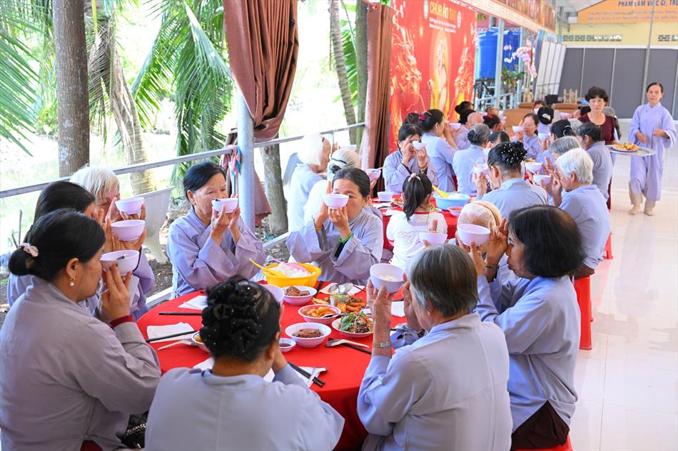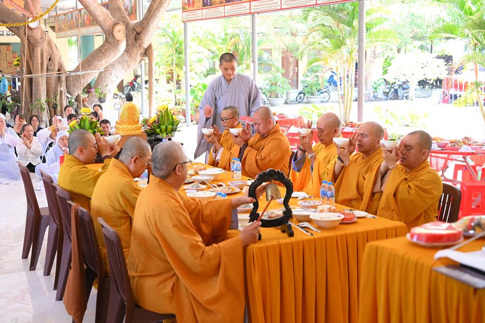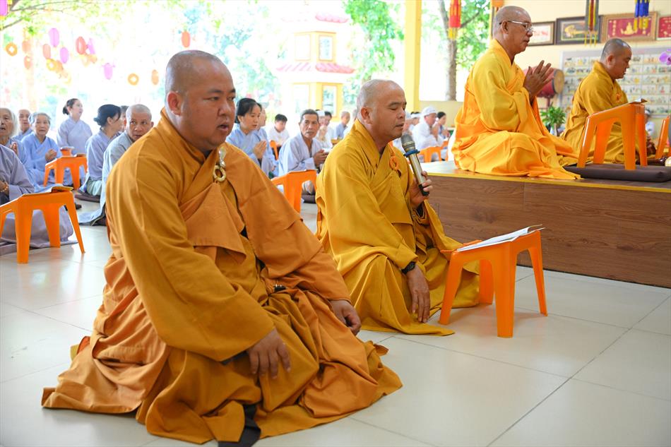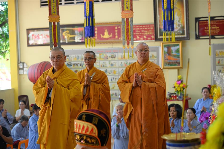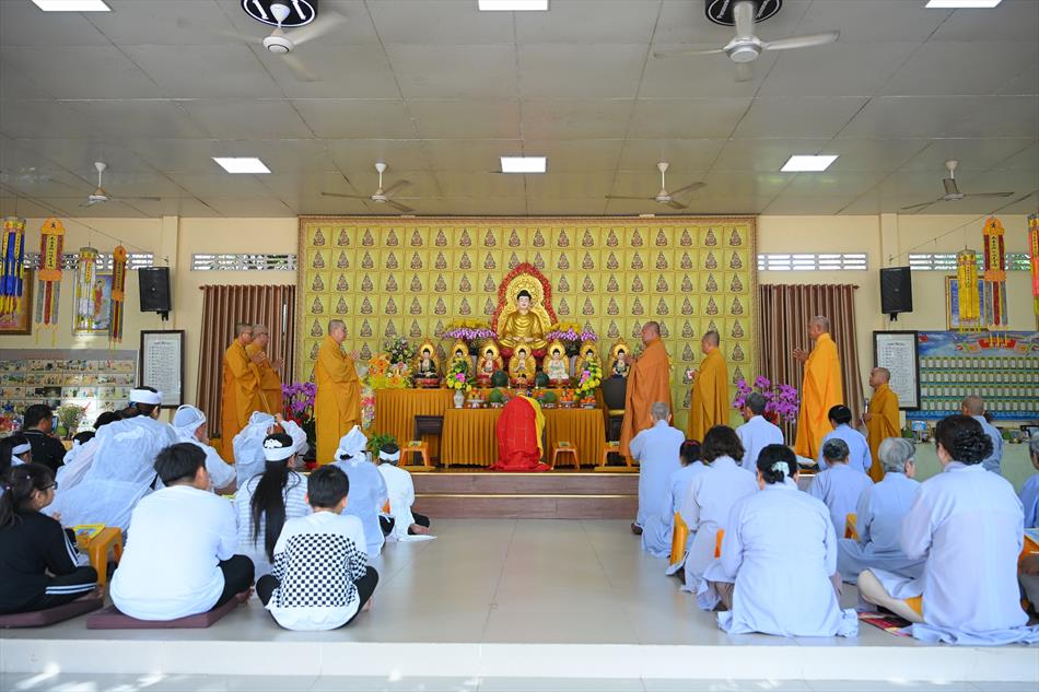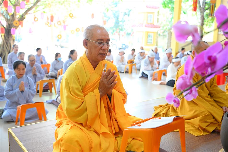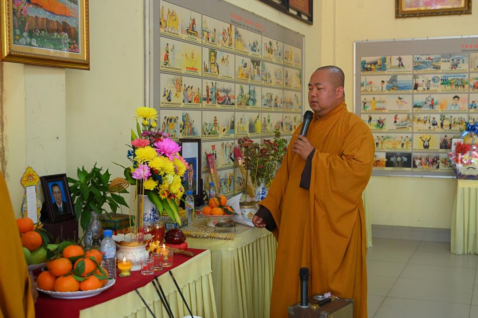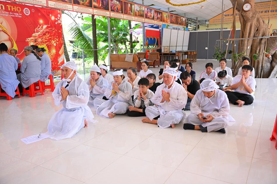 Tại buổi lễ, sau lời tác bạch của đại diện gia đình trai chủ, Thượng tọa Thích Lệ Ngôn đã ban đạo từ chứng minh. Trong lời sách tấn, Thượng tọa nhấn mạnh đạo hiếu là nền tảng đạo đức của con người, khuyến nhắc gia đình giữ gìn nếp sống hiền thiện, làm nhiều việc lành để hồi hướng công đức cho người thân quá vãng.