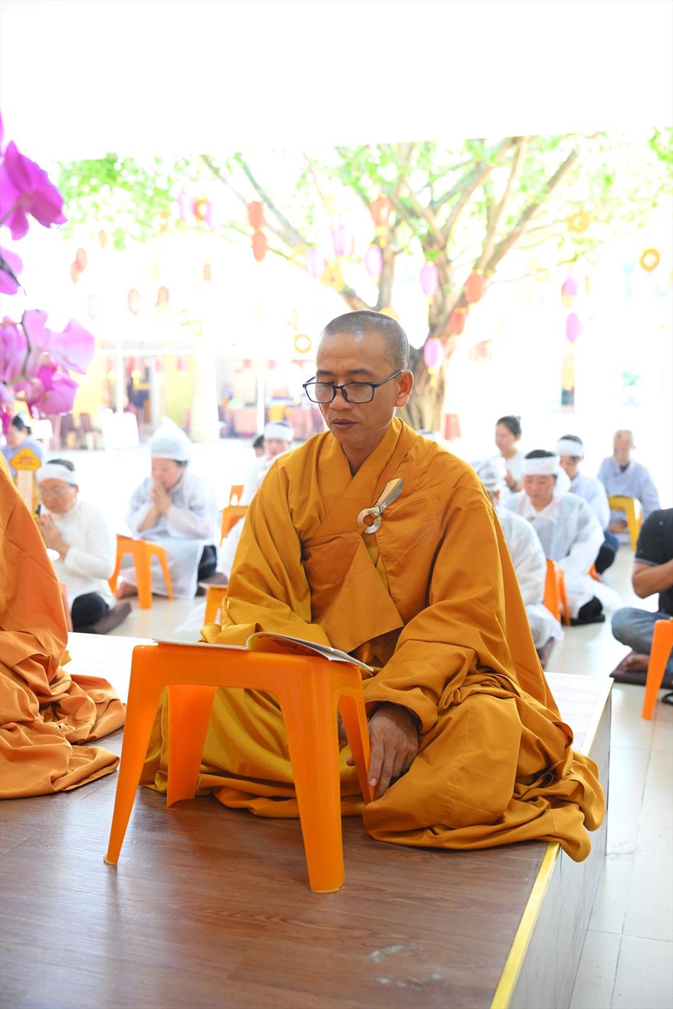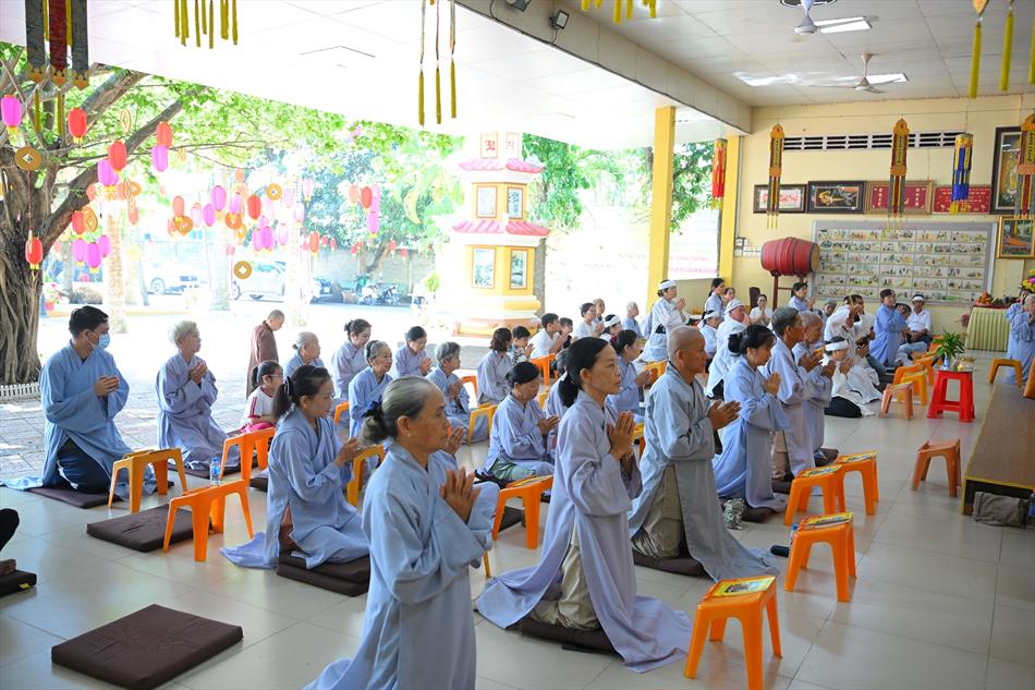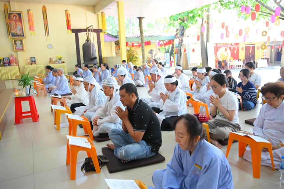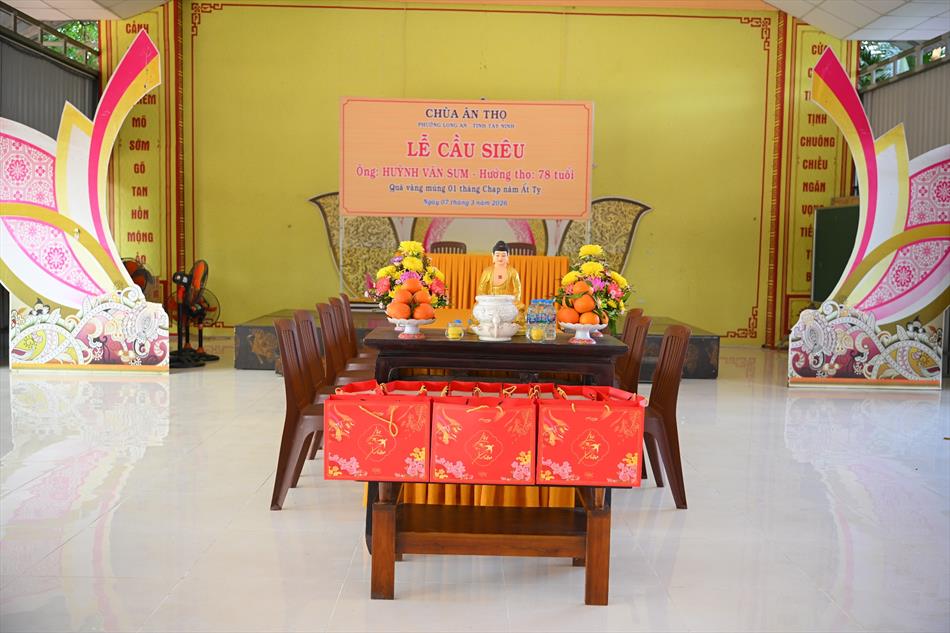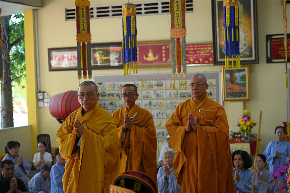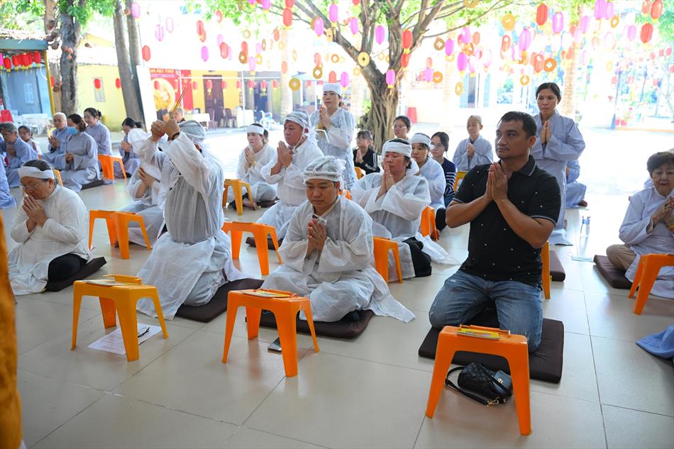 Trong không khí trang nghiêm nơi chánh điện, chư Tôn đức đã cử hành thời kinh cầu siêu với lời kinh nhiệm mầu, tiếng tụng trầm hùng, nhất tâm hồi hướng công đức cho hương linh ông Huỳnh Văn Sum sớm được siêu sinh tịnh cảnh. Thời kinh do Thượng tọa Trụ trì và Đại đức Huệ Phát chủ trì xướng tụng.