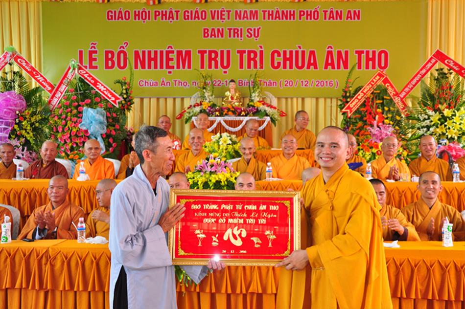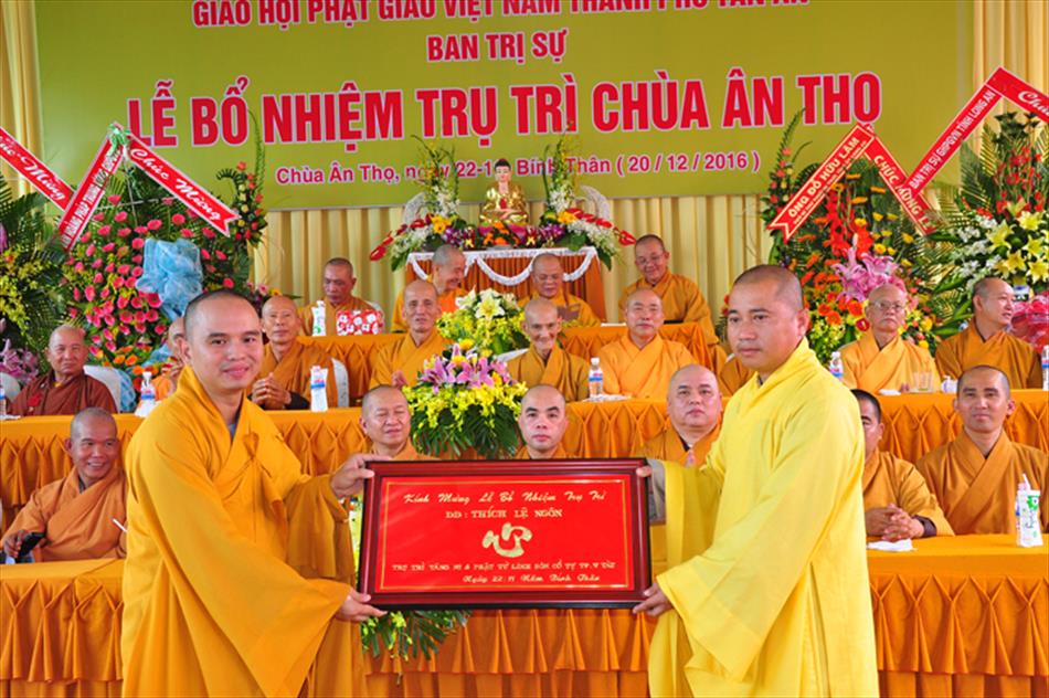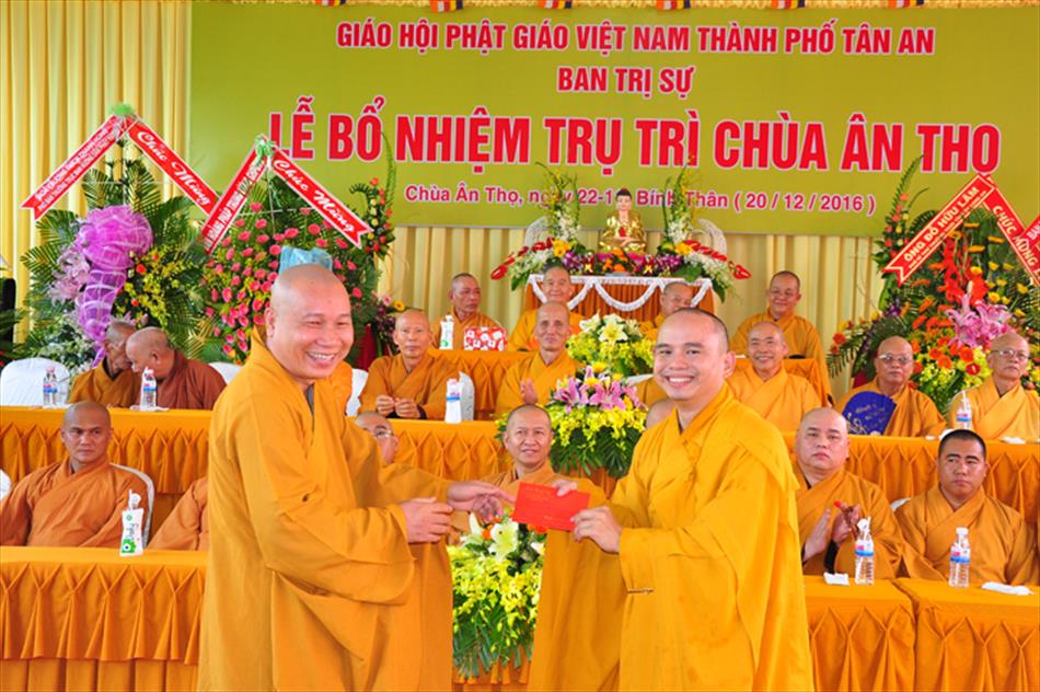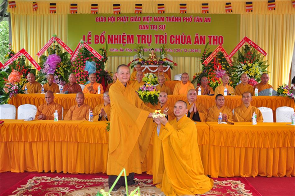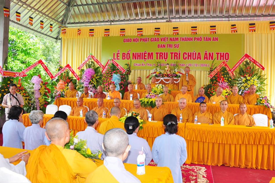 Quyết định được tuyên đọc tại buổi lễ do ĐĐ Thích Lệ Trí thay mặt Thường trực BTS GHPGVN tỉnh Long An quyết định bổ nhiệm ĐĐ Thích Lệ Ngôn giữ nhiệm vụ trụ trì chùa Ân Thọ.