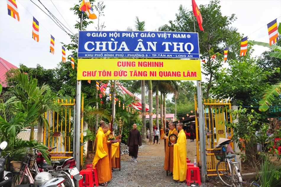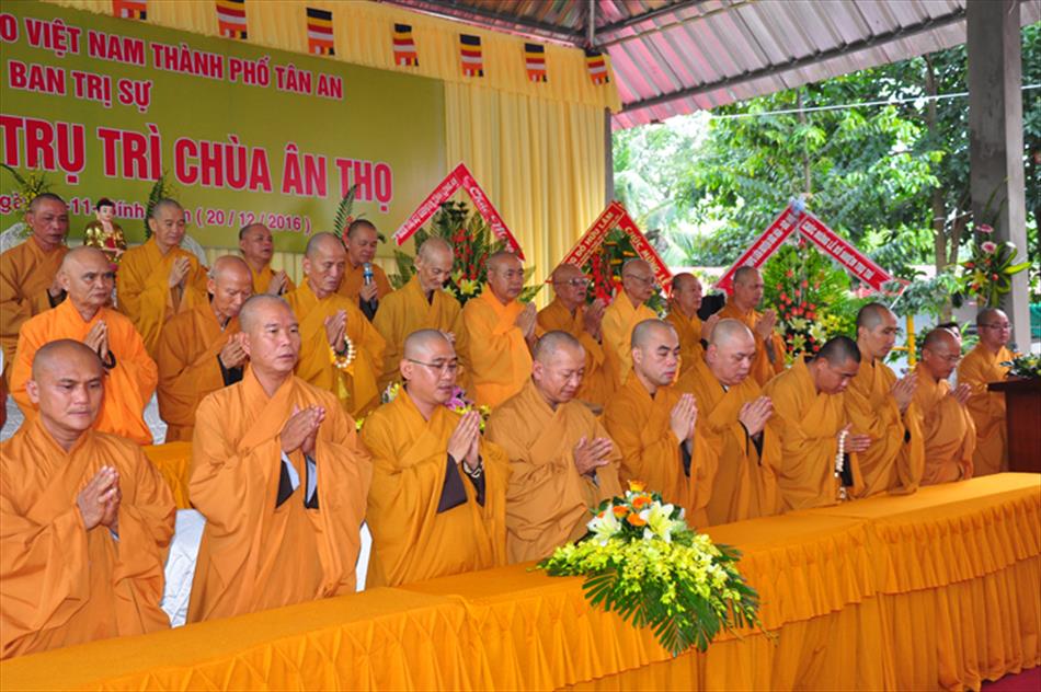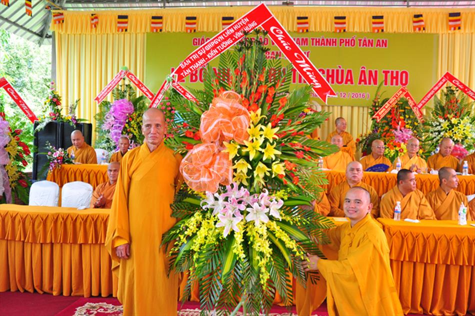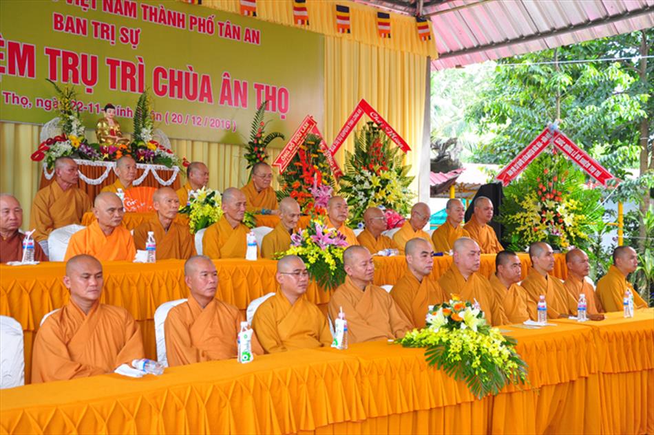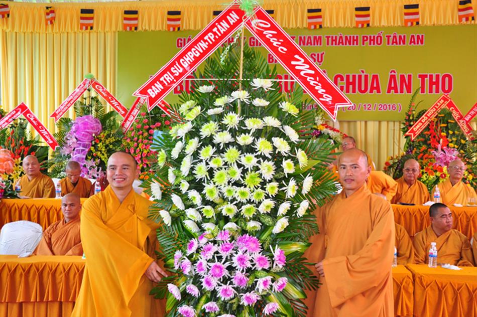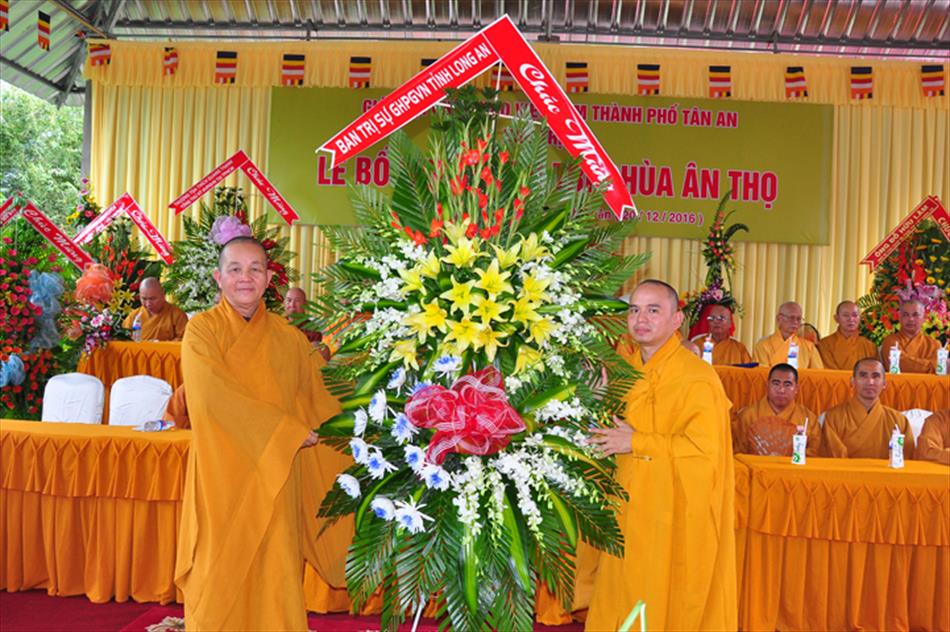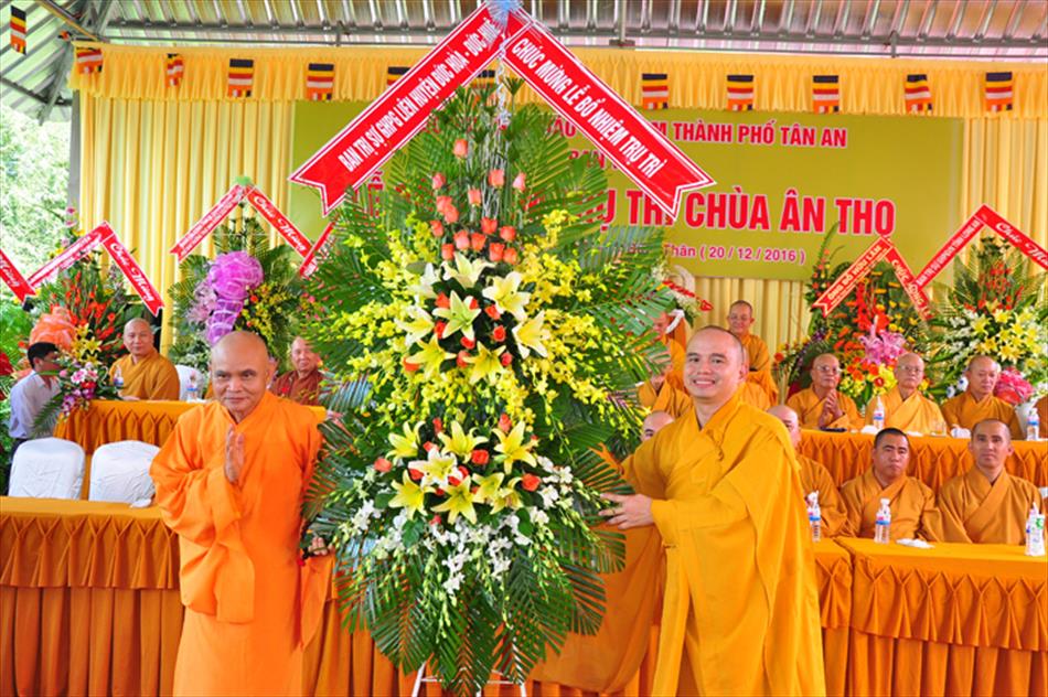Mở đầu, ĐĐ Thích Lệ Trí – Phó ban tổ chức đã đọc diễn văn khai mạc, nêu cao giá trị văn hoá, tâm linh và tu tập của ngôi chùa. Được sự đồng thuận của UBND tỉnh Long An và các cấp chính quyền cho nên Thường trực BTS GHPGVN tỉnh Long An ban hành quyết định bổ nhiệm chùa Ân Thọ. Sau đó, ban tổ chức tiếp nhận những lẵng hoa cao quý của Ban hoằng pháp TW GH; HT Thích Thanh Hùng; BTS GHPGVN tỉnh Long An; Ban dân vận – UBMTTQVT Tp Tân An; ông Đỗ Hữu Lâm – Phó bí thư thường trực Tỉnh uỷ tỉnh Long An.