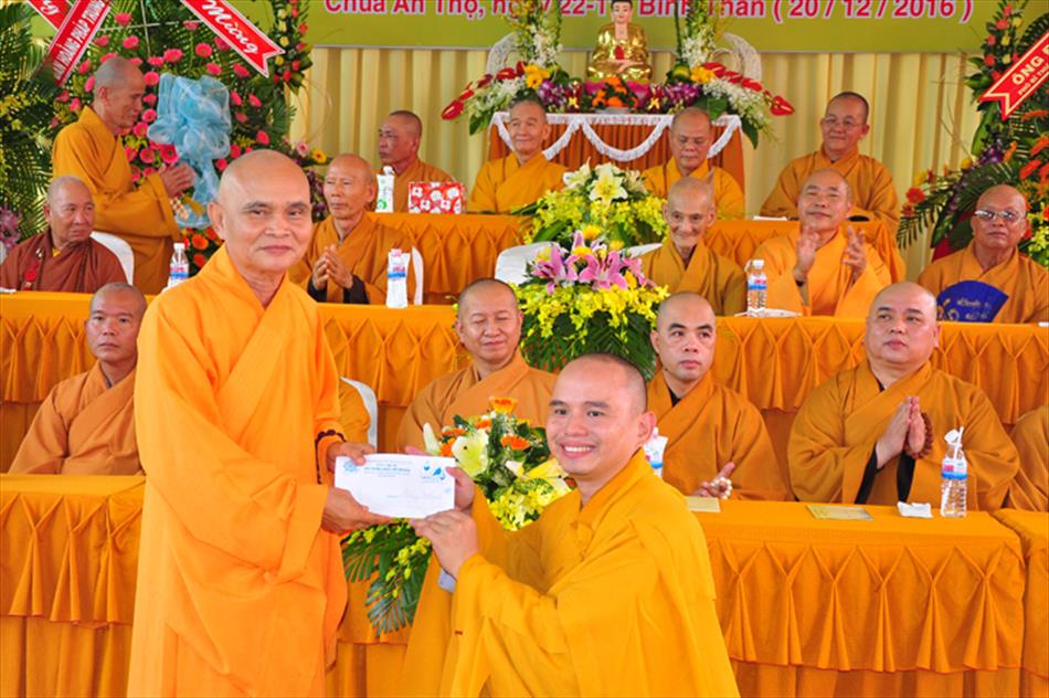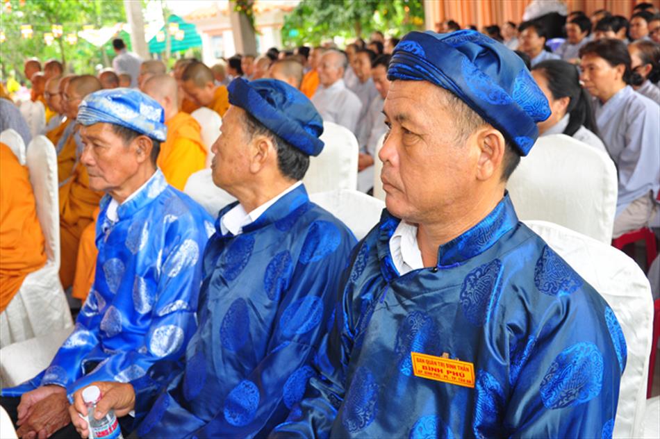 Buổi lễ được sự quang lâm chứng minh của: HT Thích Thanh Hùng – UV Thường trực HĐTS, Phó ban Thường trực ban Hướng dẫn Phật tử TW, Phó ban Hoằng pháp TW; HT Thích Tấn Đạt – UV Thường trực HĐTS, Phó văn phòng 2 TW GH, Phó ban Thường trực ban Hoằng pháp TW; HT Thích Thiện Huệ – Chứng minh BTS GHPGVN tỉnh Long An, Chứng minh BTS GHPGVN Tp Tân An; HT Thích Minh Thiện – UV HĐTS, Phó ban Hoằng pháp TW kiêm Trưởng đoàn Giảng sư đoàn ban Hoằng pháp TW, Trưởng ban BTS GHPGVN tỉnh Long An, Hiệu trưởng trường TCPHLA; HT Thích Thiện Tâm – Phó trưởng ban BTS kiêm trưởng ban Kiểm soát GHPGVN tỉnh Long An; HT Thích Huệ Hồng – Phó trưởng ban BTS GHPGVN tỉnh Long An; TT Thích Quảng Tâm – Phó trưởng ban BTS kiêm Trưởng ban TTXH GHPGVN tỉnh Long An; HT Thích Bửu Sơn – Chứng minh BTS GHPGVN huyện Châu Thành; HT Thích Thiện Phú – Chứng minh BTS GHPGVN huyện Châu Thành; HT Thích Quảng Ý – Trưởng ban BTS GHPGVN liên huyện Tân Thạnh – Kiến Tường – Vĩnh Hưng; HT Thích Viên Giác – Phó ban văn hoá GHPGVN TpHCM, Chủ tịch hội cựu sinh viên HVPGVN tại TpHCM; TT Thích Minh Chánh – Viện chủ chùa Ân Thọ; ĐĐ Thích Lệ Trí – UV HĐTS, Chánh thư ký BTS GHPGVN tỉnh Long An, Phó ban Thường trực BTS GHPGVN Tp Tân An; ĐĐ Thích Chúc Tín – Phó thư ký kiêm Chánh văn phòng GHPGVN Tp Đà Nẵng, Hiệu trưởng trường TCPH Đà Nẵng; ĐĐ Thích An Trung – Trưởng ban BTS GHPGVN huyện Bức Lức, Đ Đ Thích Hoá Minh – Trưởng ban BTS GHPGVN huyện Thủ Thừa.
