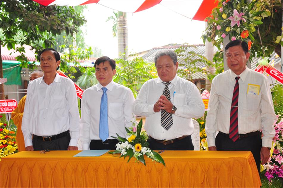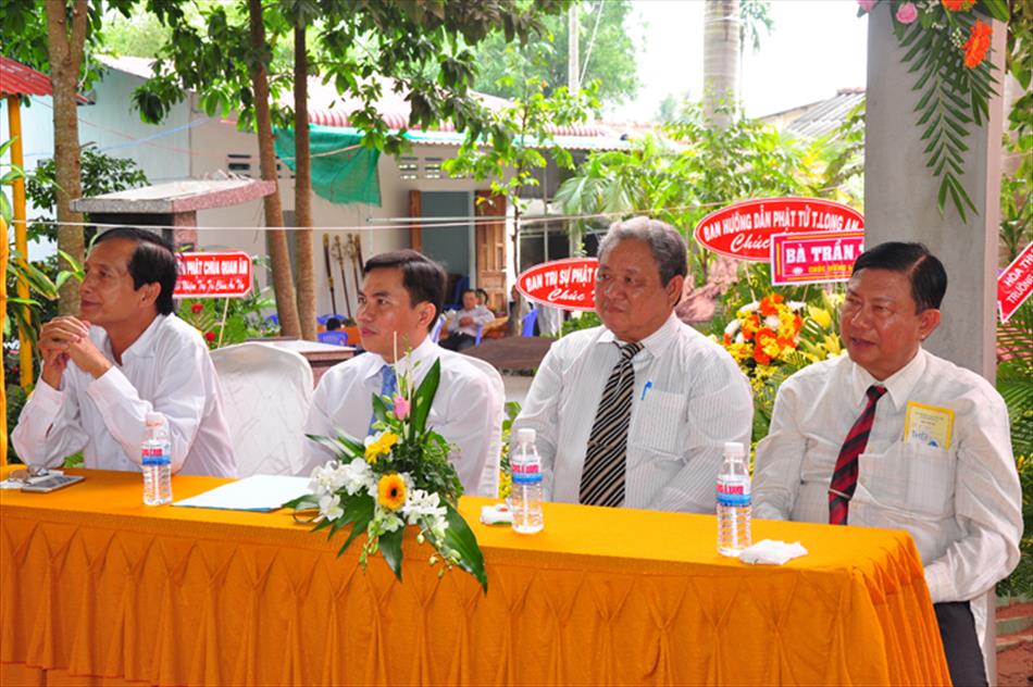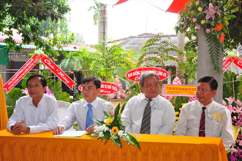Về phía chính quyền tham dự gồm có: Ông Ông Đặng Văn Xướng- Nguyên thường vụ Tỉnh Ủy, Chủ tịch HĐND tỉnh Long An; Ông Lê Trường Cửu- Đại diện Ban Tôn Giáo tỉnh Long An; Ông Lê Công Đỉnh- Chủ Tịch UBND Tp. Tân An; Ông Lê Thành Phước- Chủ tịch MTTQ Tp. Tân An cùng quý vị lãnh đạo ban nghành đoàn thể tham dự.