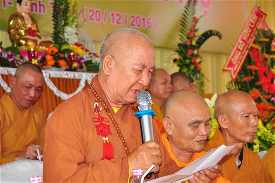 Ông tin tưởng với trọng trách của mình, ĐĐ Thích Lệ Ngôn sẽ phát huy tốt vai trò to lớn của mình, thực hiện tốt Hiến chương của GHPGVN, các chủ trương của Đảng, Nhà nước và chính quyền các cấp sẽ đạt được nhiều thành quả hơn nữa các hoạt động đạo – đời hoà hợp trên tinh thần “phụng sự chúng sinh là cúng dường chư Phật“.