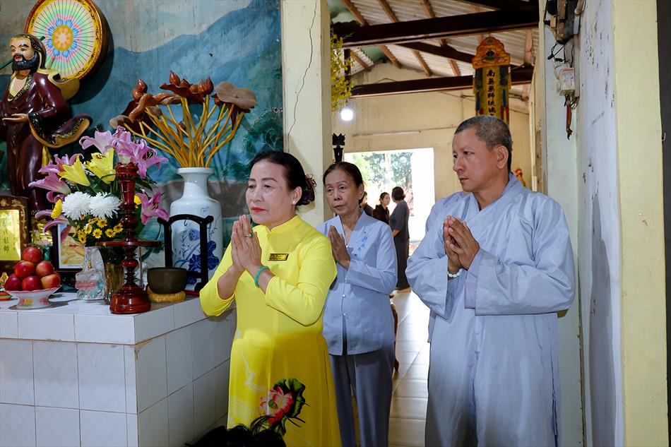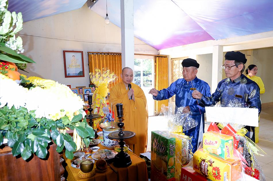 Hòa thượng Thích Minh Chánh – Viện chủ chùa Ân Thọ, đã cùng Đại đức Thích Lệ Ngôn – Trụ trì chùa Ân Thọ và đạo tràng Phật tử thiết lễ tưởng niệm trong không khí trang nghiêm, thành kính. Buổi lễ cũng hân hạnh đón tiếp bà Trần Thị Nhanh – nguyên Phó Chủ tịch UBND tỉnh Long An; Hội đồng Gia tộc Đức Chưởng Tiền quân Quận công Nguyễn Huỳnh Đức cùng đông đảo thiện tín, quá khách về tham dự.