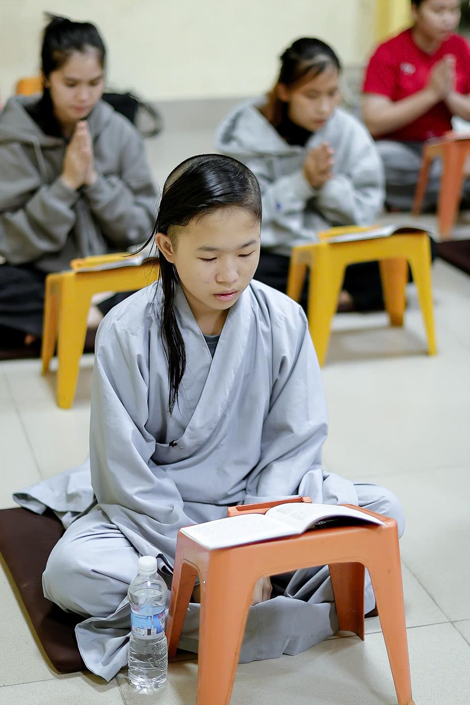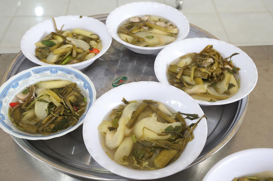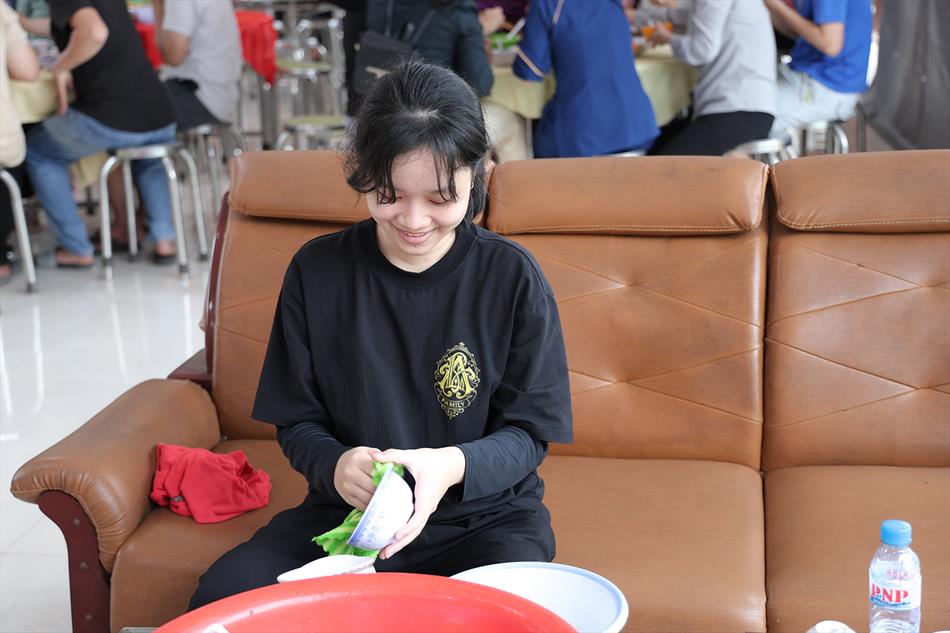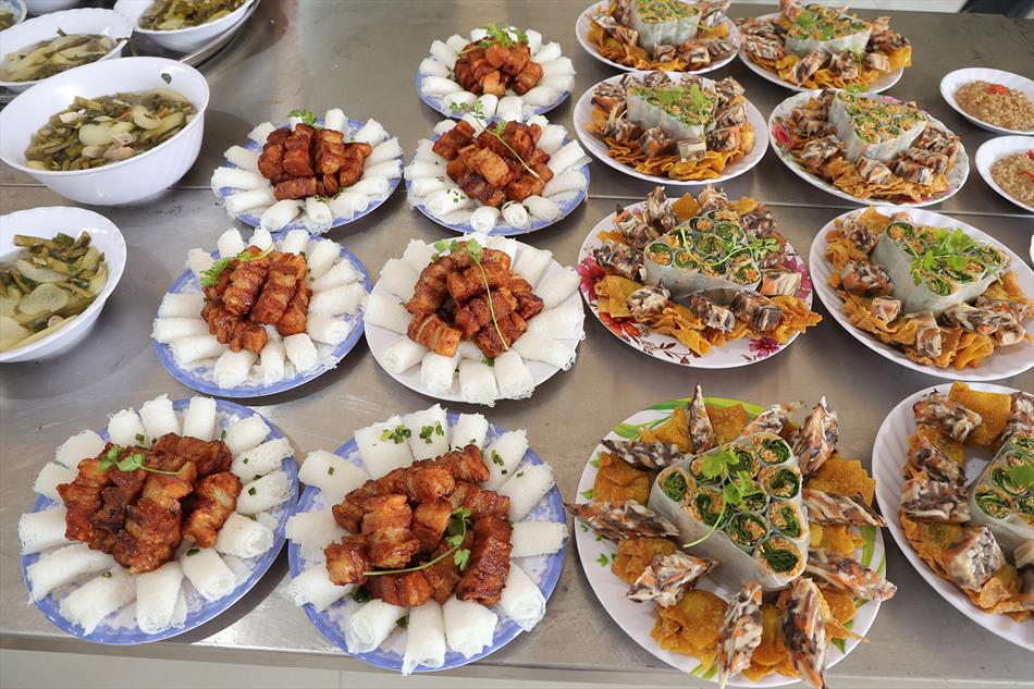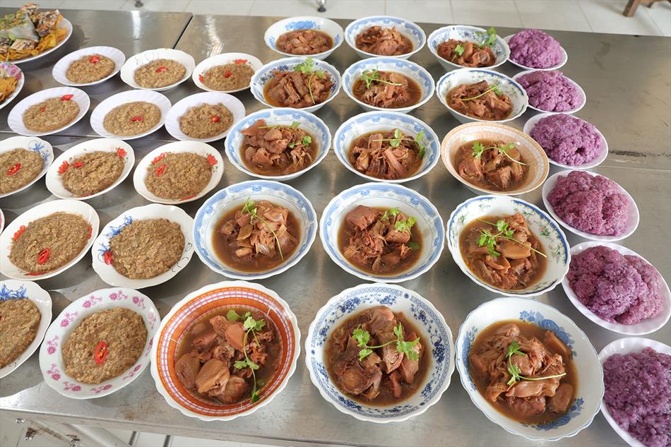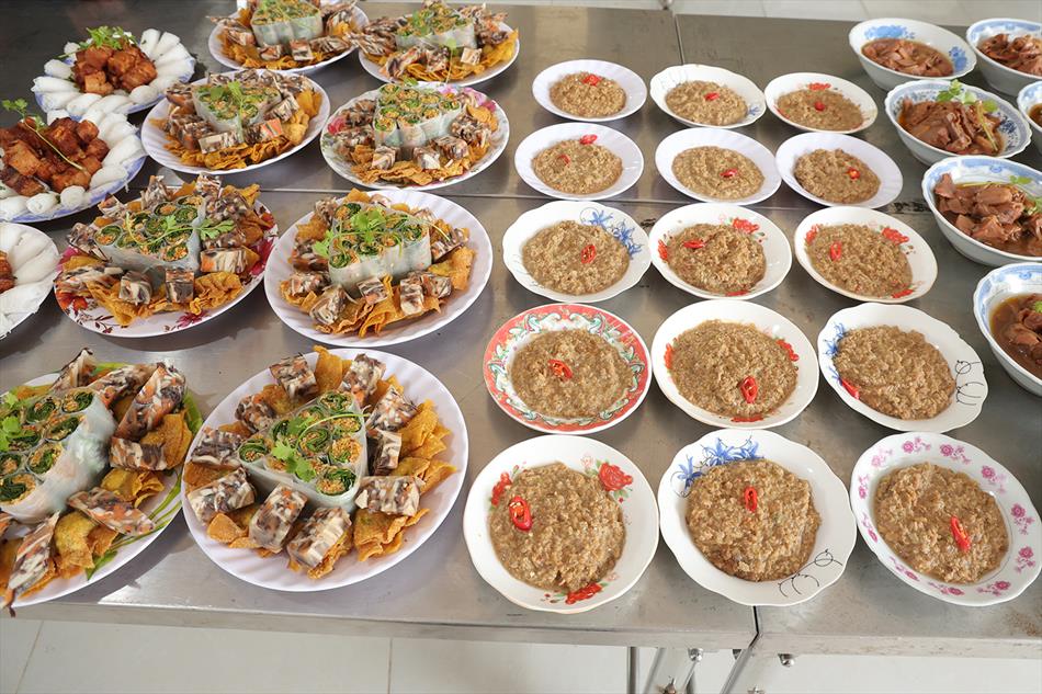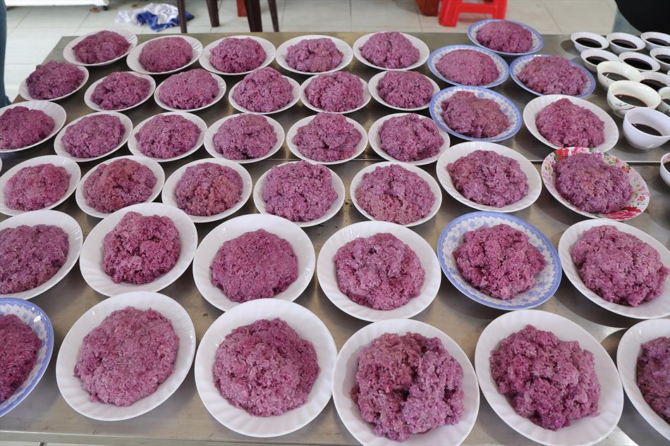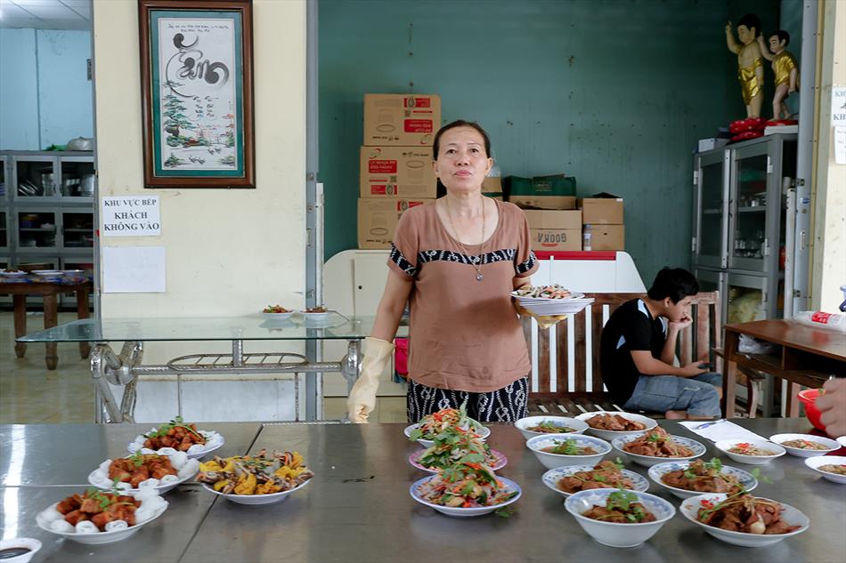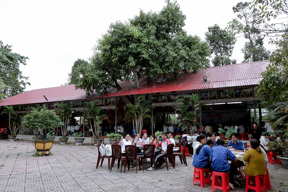 Sau lễ quy y và tụng kinh, chùa đón tiếp đông đảo Phật tử và khách thập phương đến dâng hương, lễ Phật. Như thường lệ vào các ngày rằm lớn, chùa chuẩn bị bữa cơm chay thân mật. Nhà bếp đã sắp xếp công việc liên tục suốt một tuần lễ, chuẩn bị các món chiên, xào, xỏ xiên…trữ đông để phục vụ hôm nay. Tổng cộng 150 mâm (mỗi mâm 10 người) được chiêu đãi trong buổi trưa. Lời khen của khách làm cho đại chúng quên đi mệt nhọc, xem đó như niềm vui cống hiến cho Tam Bảo và phục vụ khách thập phương.