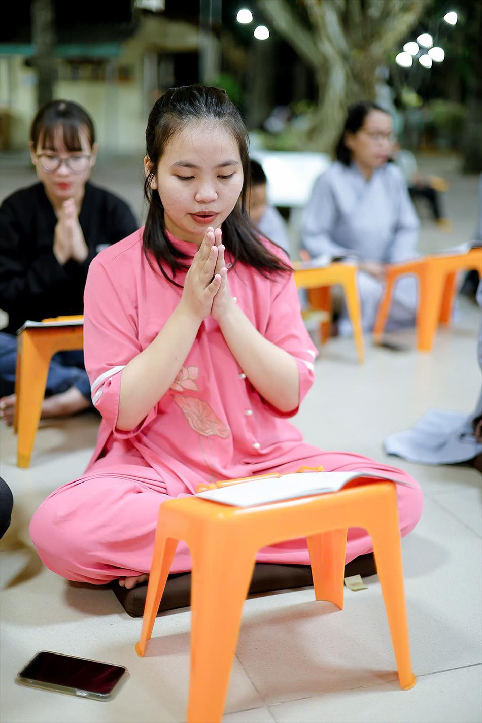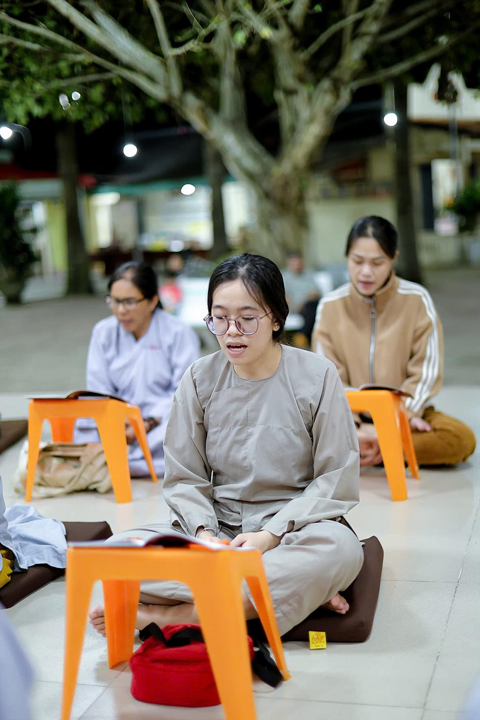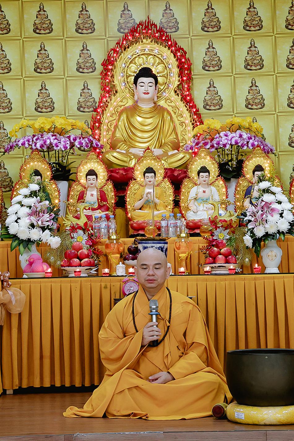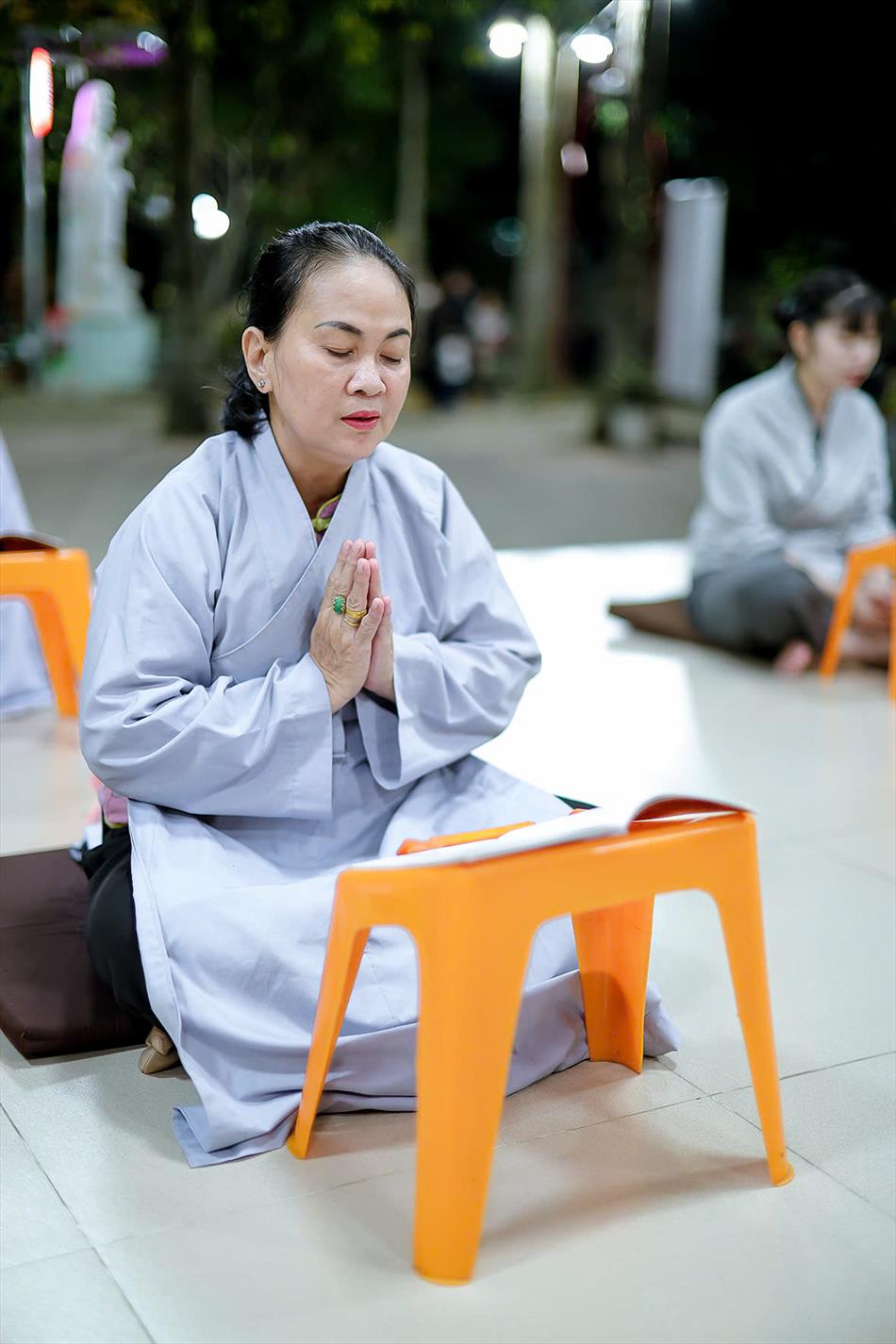 Buổi chiều tối, đại chúng tiếp tục tham dự khóa lễ sám hối, tụng kinh, và sau đó là thời thuyết pháp - chương trình sinh hoạt cố định trong các rằm lớn của chùa. Riêng 3 rằm trọng đại (tháng Giêng, tháng Tư và tháng Bảy), chùa tổ chức thêm văn nghệ, hoa đăng, tiệc bánh. Rằm tháng Mười, chương trình chỉ thuần lễ nghi và thuyết pháp, không có văn nghệ.