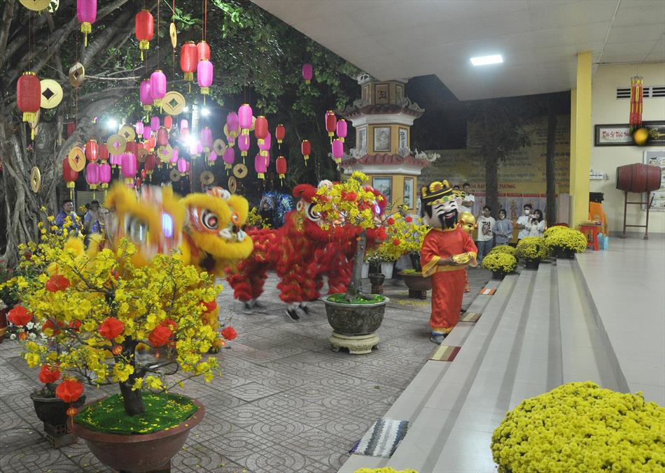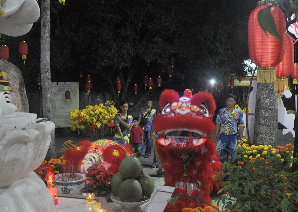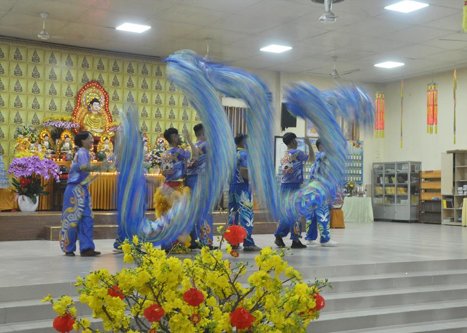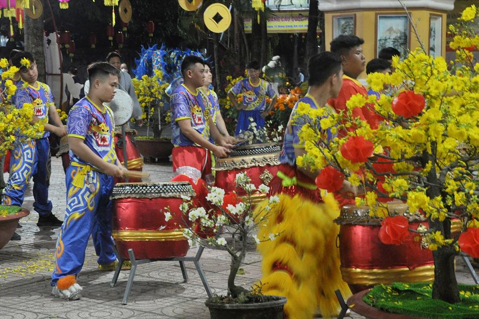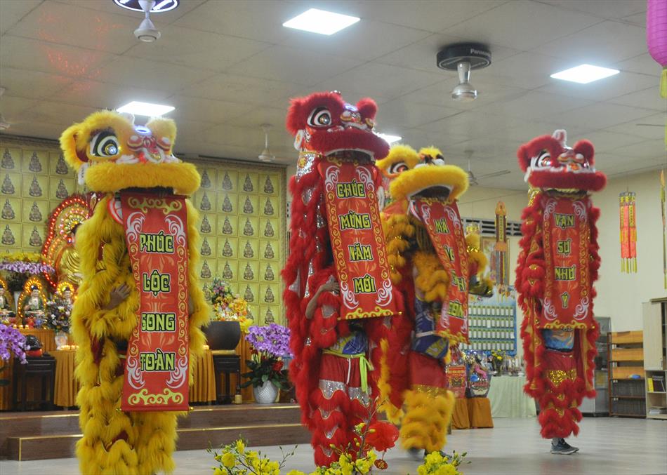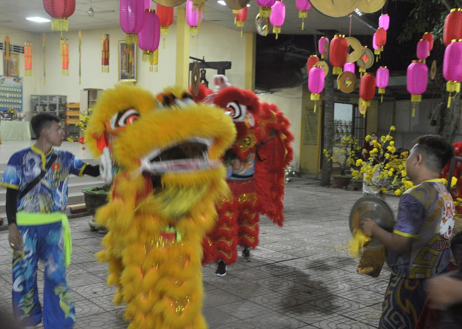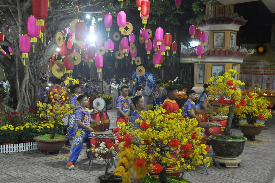 Trong không khí trang nghiêm và rộn ràng của đêm giao thừa, tiếng trống lân vang lên như đánh thức mùa xuân, dâng lời cầu chúc quốc thái dân an, mưa thuận gió hòa. Sau nghi thức lễ Phật, đoàn đã biểu diễn và phát lộc đầu năm đến quý Phật tử, gửi gắm niềm vui và sự may mắn cho một năm mới an lành, cát tường.
